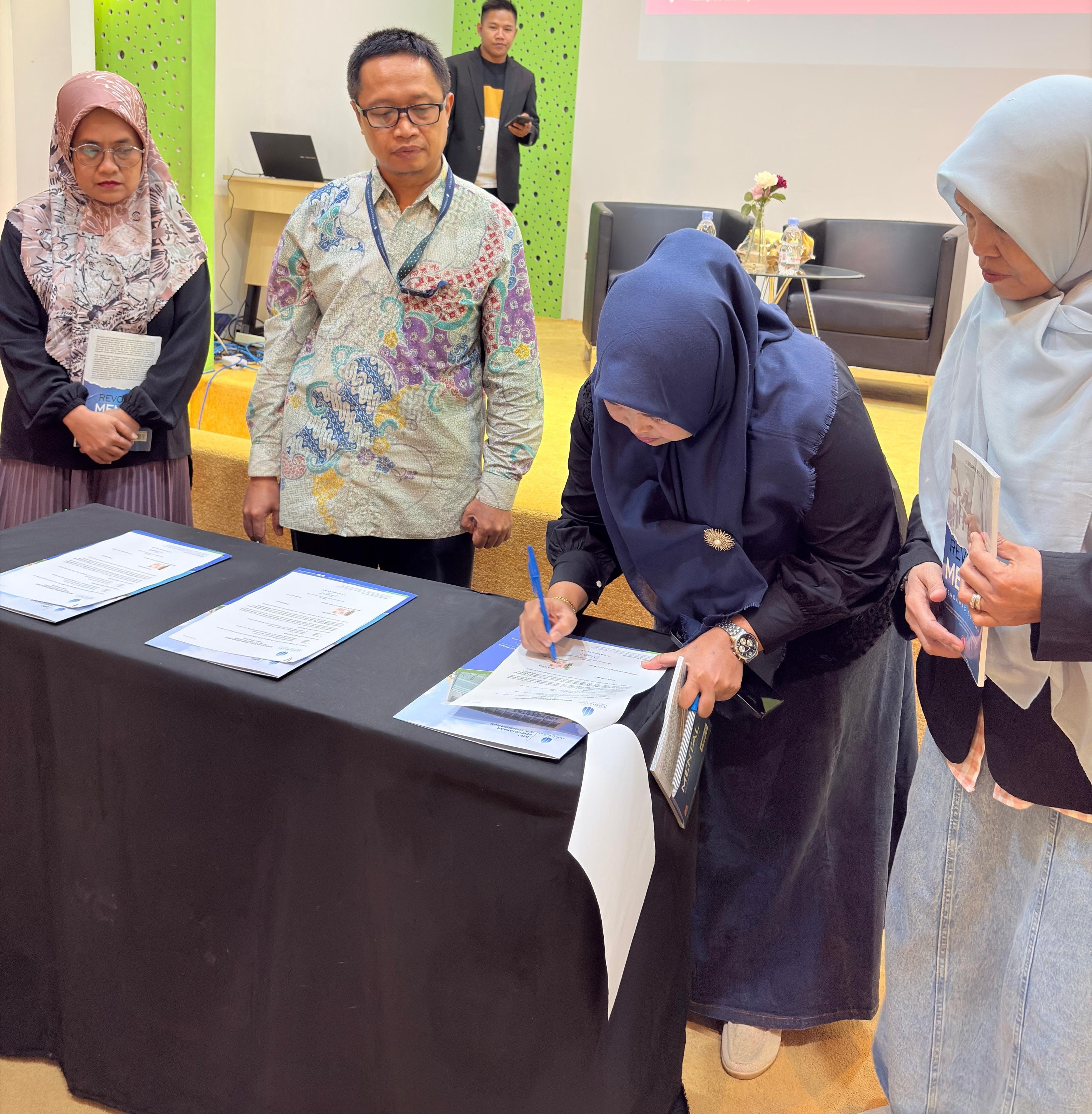 Dilanjutkan dengan penyerahan buku secara simbolis ke perwakilan sekolah, masing-masing sekolah menerima hibah sebanyak 114 buku yang terdiri dari berbagai koleksi bacaan edukatif. Donasi ini diharapkan dapat memperkaya koleksi perpustakaan sekolah serta mendorong minat baca dan budaya literasi di kalangan siswa.