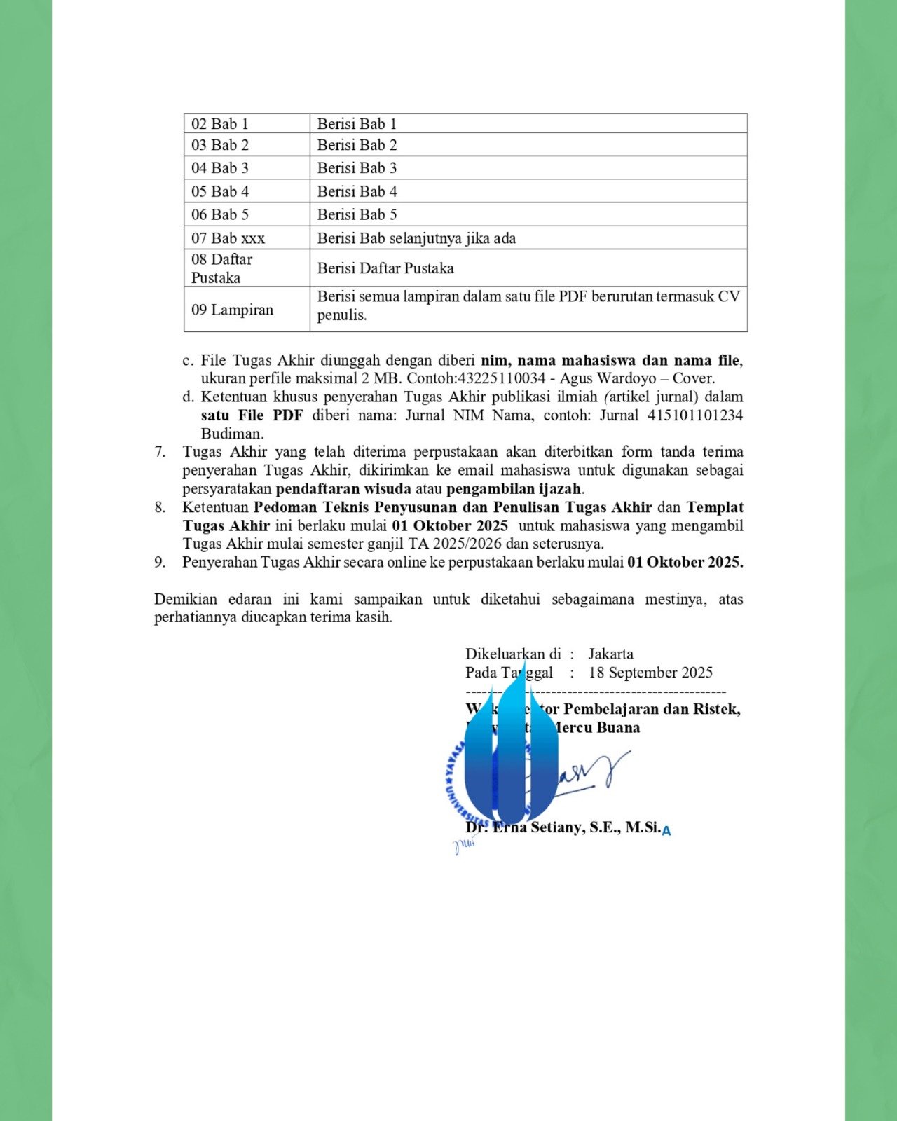 Surat Edaran Pedoman Penyusunan dan Templat Tugas Akhir Mahasiswa