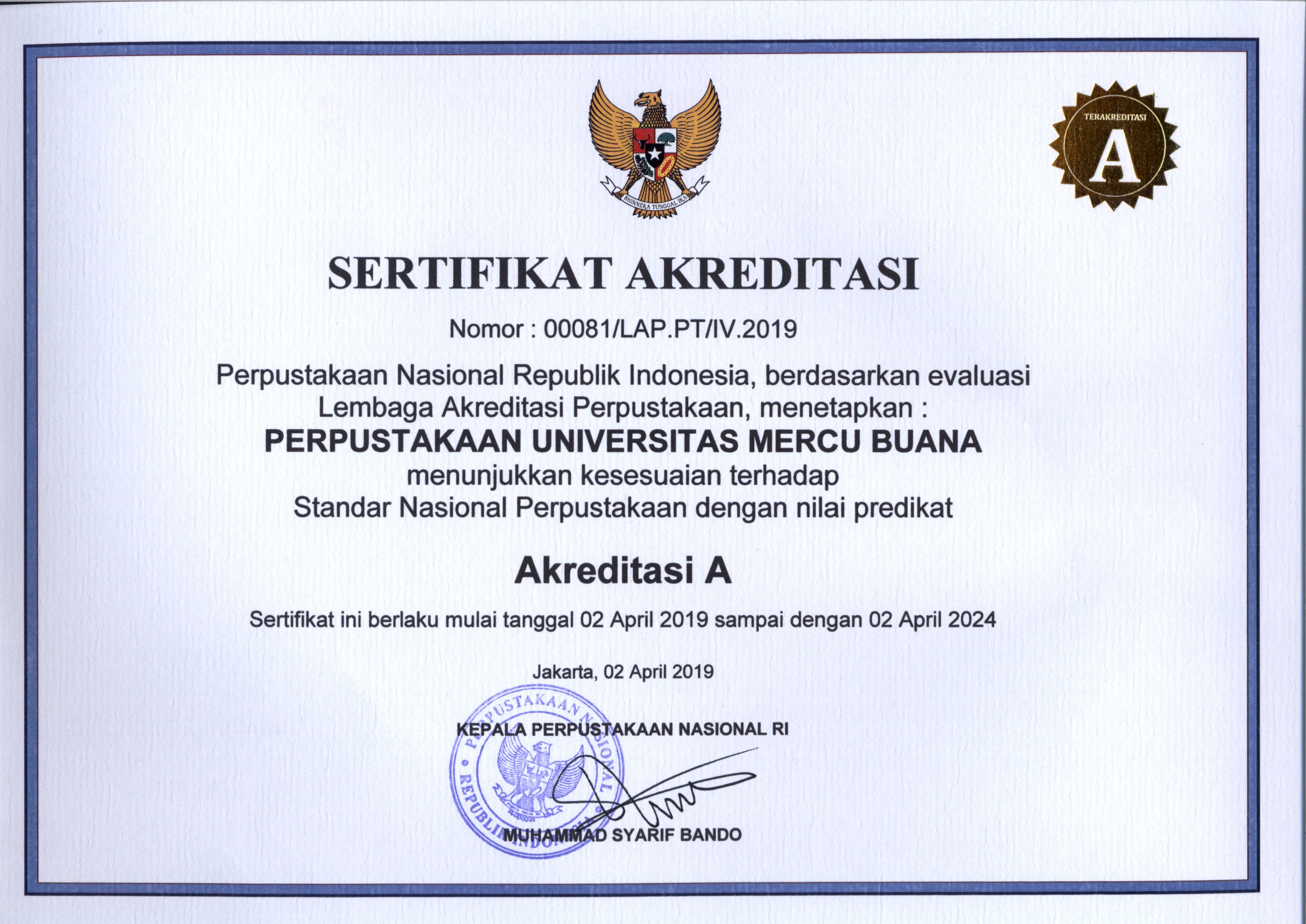 Sertifikat Akreditasi Perpustakaan UMB Tahun 2019